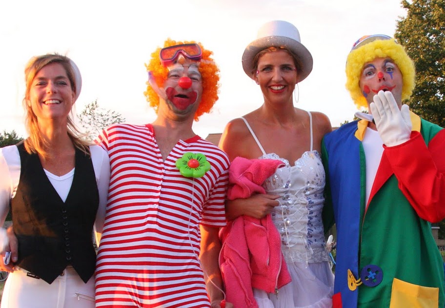 Clown Botias met zijn urinebloempjesspuit en Tjeukeclown