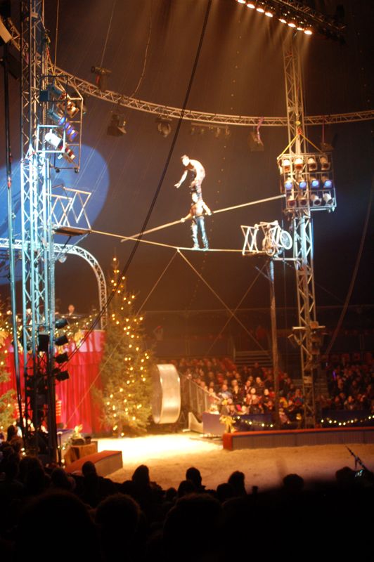 Strakpak met balletschoenen eronder en paal van 4 meter = koorddanser