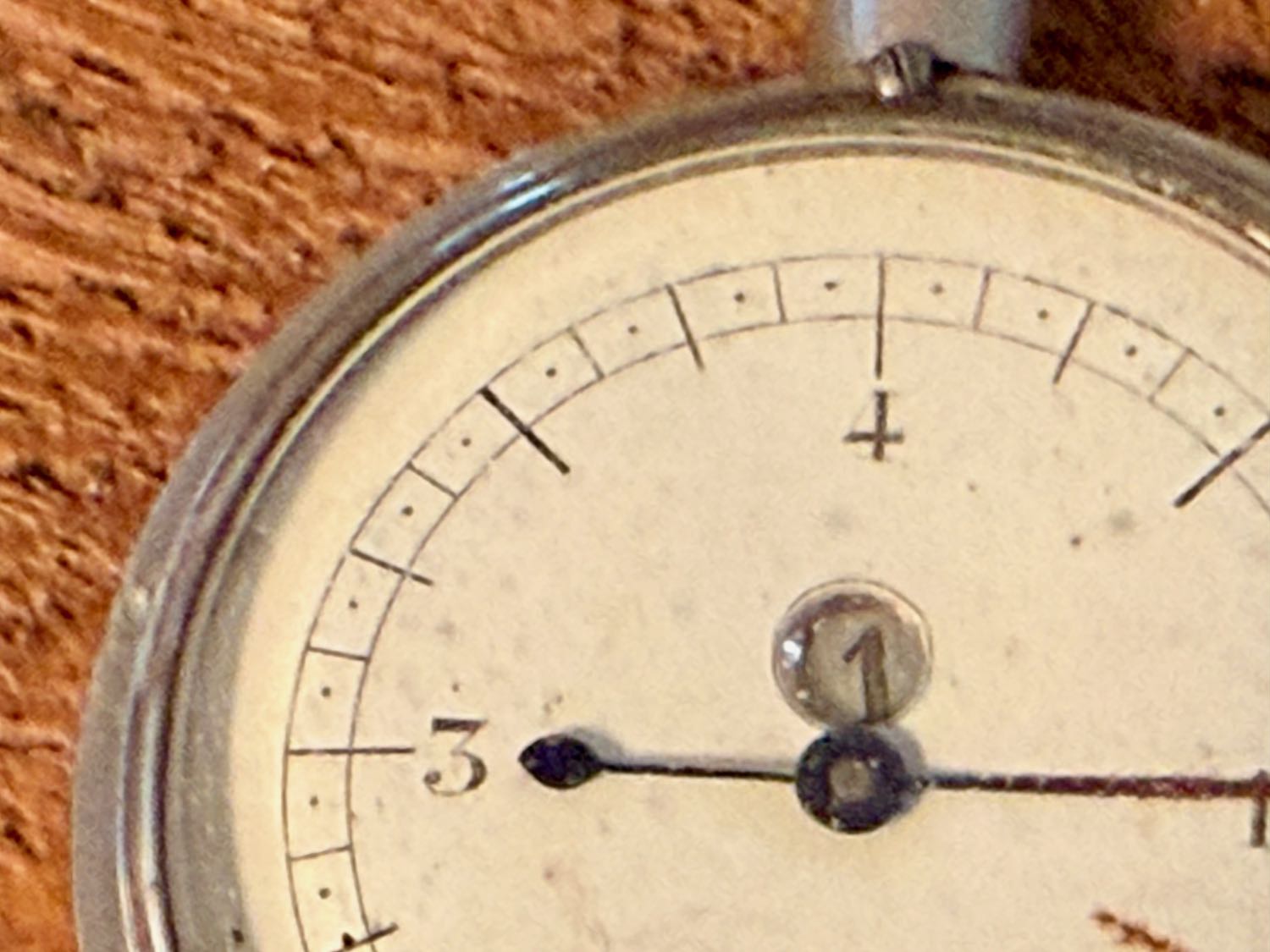 De automatische zoekfunctie doet zijn werk en levert een prachtige curvimeter van 100 jaar oud (1920-1930). Echt een klein uurwerkje, want de grote wijzers doet de centimeters en de kleine telt op tot aan de meters. Qua loopwerk klopt het exact: 1 grote ronde is 1 eenheid verder op de meterschaal. Deze heeft ook het grootste loopwiel tot nu toe. Heel blij mee.