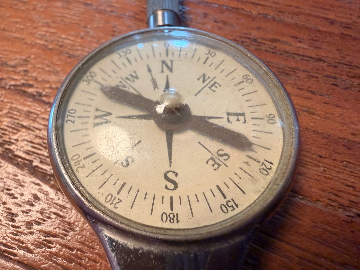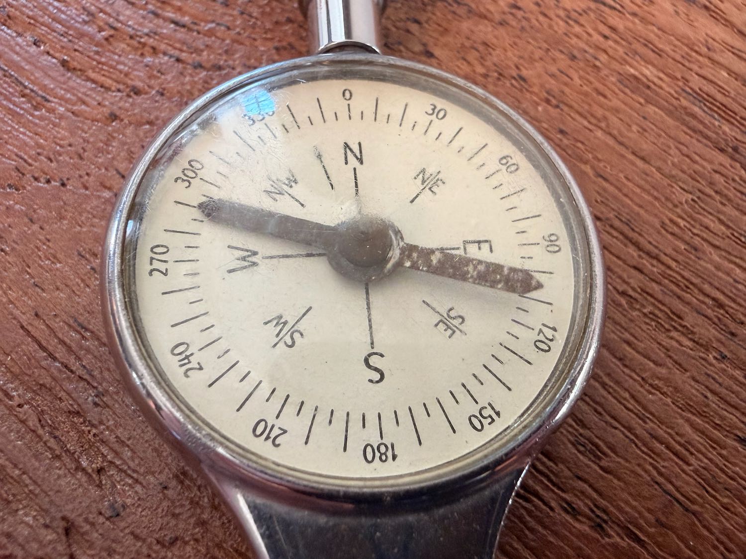 Deze wilde ik zeker nog. Iemand in België vroeg er 69 euro voor vanwege de voor hun sentimentele waarde. Ik scoorde deze op marktplaats voor 14 euro. Dezelfde… Als je het steekje eraf haalt, ligt het kompas mooi waterpas en hgheeft ie beter aan waar het noorden ligt. Ook deze is weer uitgevoerd met een meer-ronde-teller.