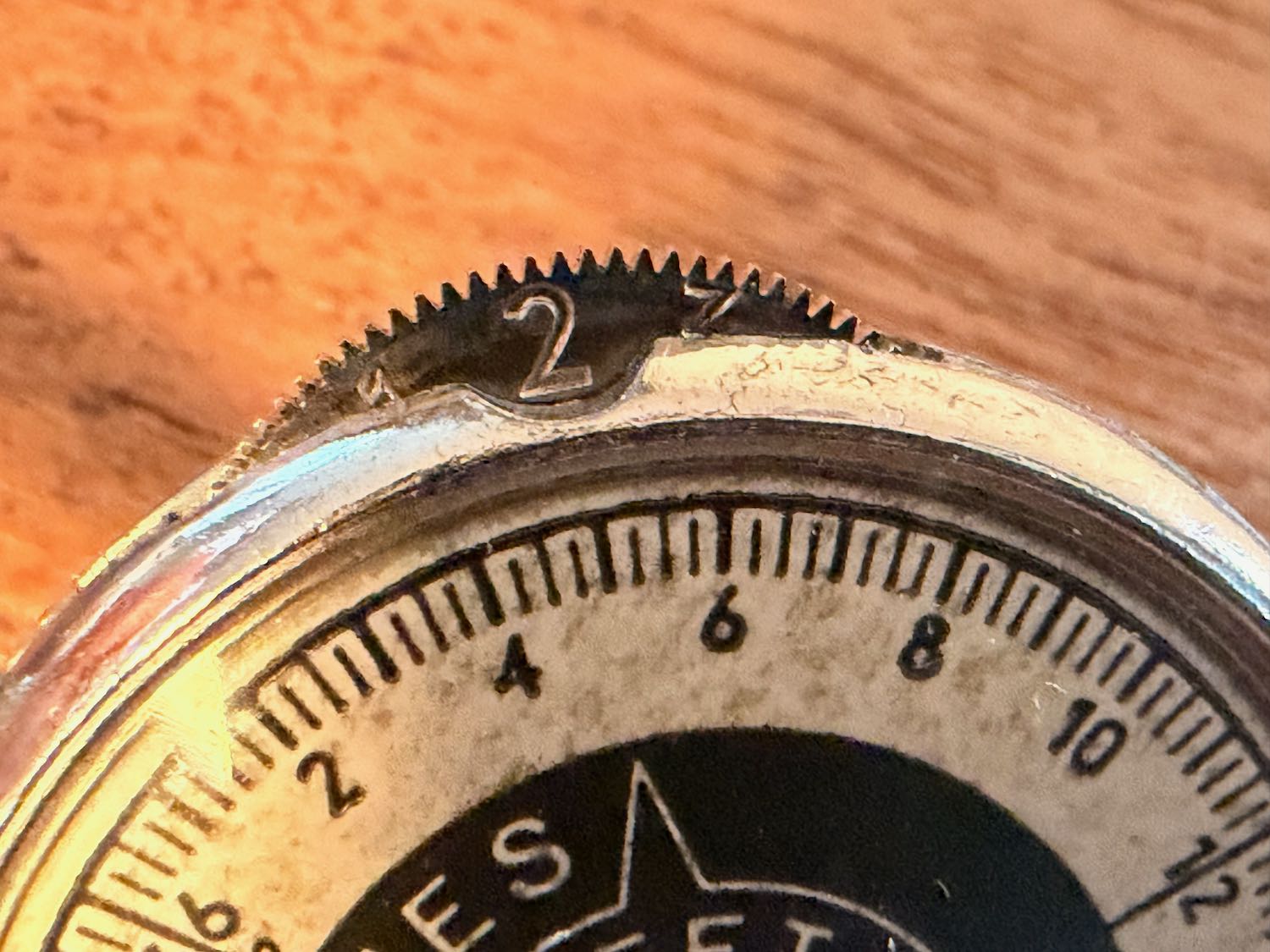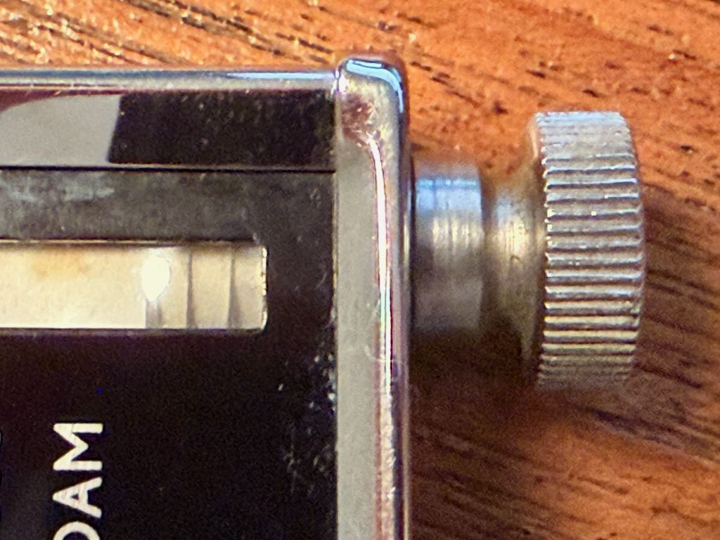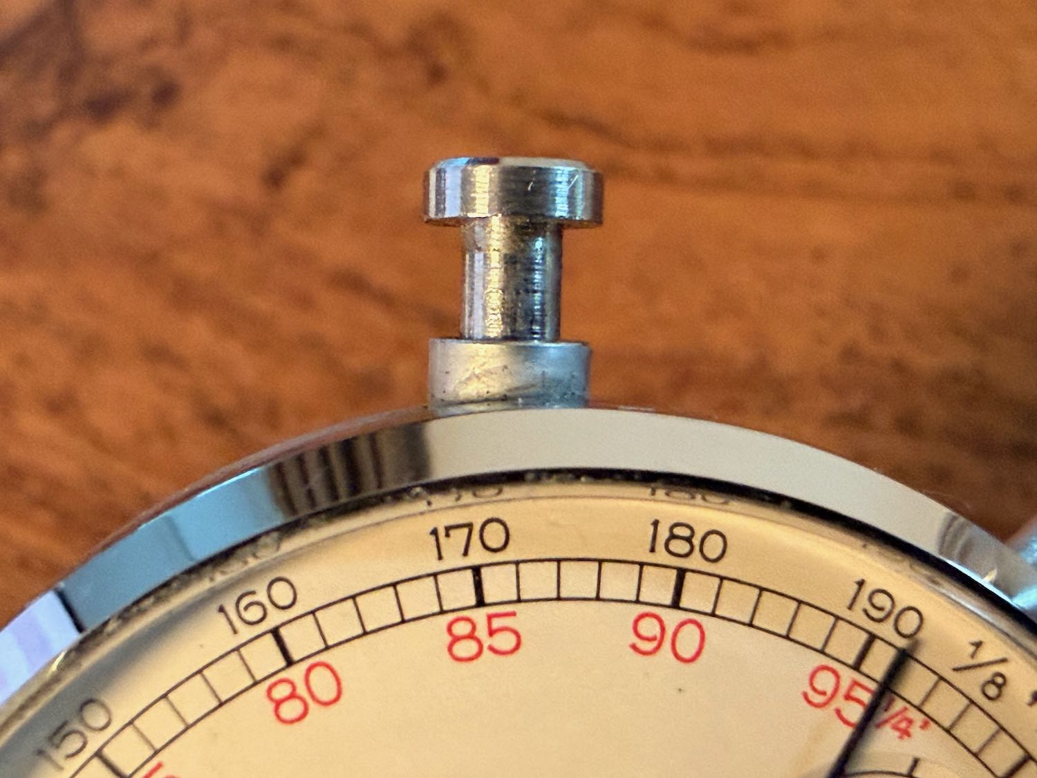 `Cm of inches zit hem vooral in de print van de schaal natuurlijk, de afstand die het wieltje aflegt blijft hetzelfde. Dit is de ultieme en ik had er al een paar keer enkele gezien en misgelopen, want hier vragen ze rustig 75 tot 100 euro voor. Het is wel een inch uitvoering, maar ik betaalde slechts een paar tientjes om het leuk te houden. Prachtig uitgevoerd met die schoeljes, de dieperliggende ‘rondeteller’ en natuurlijk de reset knop die zowel de grote als de kleine wijzer in een fractie van een seconde strak op nul zet.
