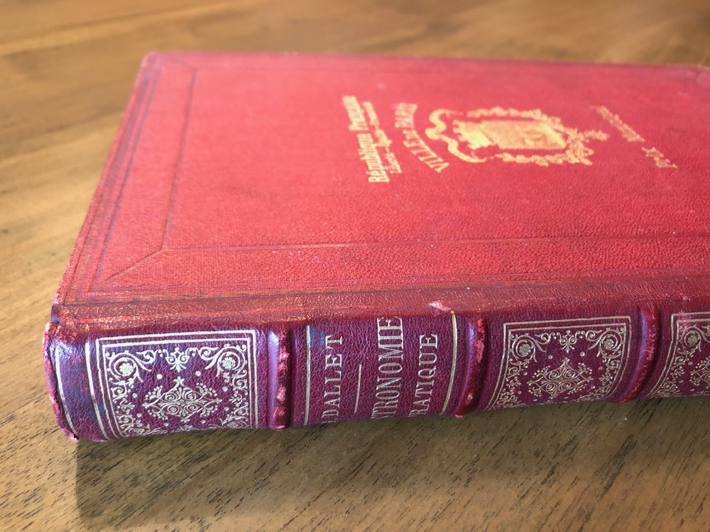 Augustine Adelaire zal dit boek rond 1907 in haar bezit hebben gekregen. Ik heb het in Oktober 2019 gekocht van boekhandelaars in Spa België toen ik daar op vakantie was. Ik had boeken gekocht via Catawiki, maar ik was te snel geweest. Na wat onderhandelen kon ik ze ruilen voor enkele Franstalige astronomie boeken. Dit is de mooiste uit de set van 5 die ik van dat weekendje mee terug nam. (Ik moet wel stoppen Franstalige boeken te kopen, tijd vinden om Nederlandse of Engelse boeken te lezen is al lastig genoeg…)
