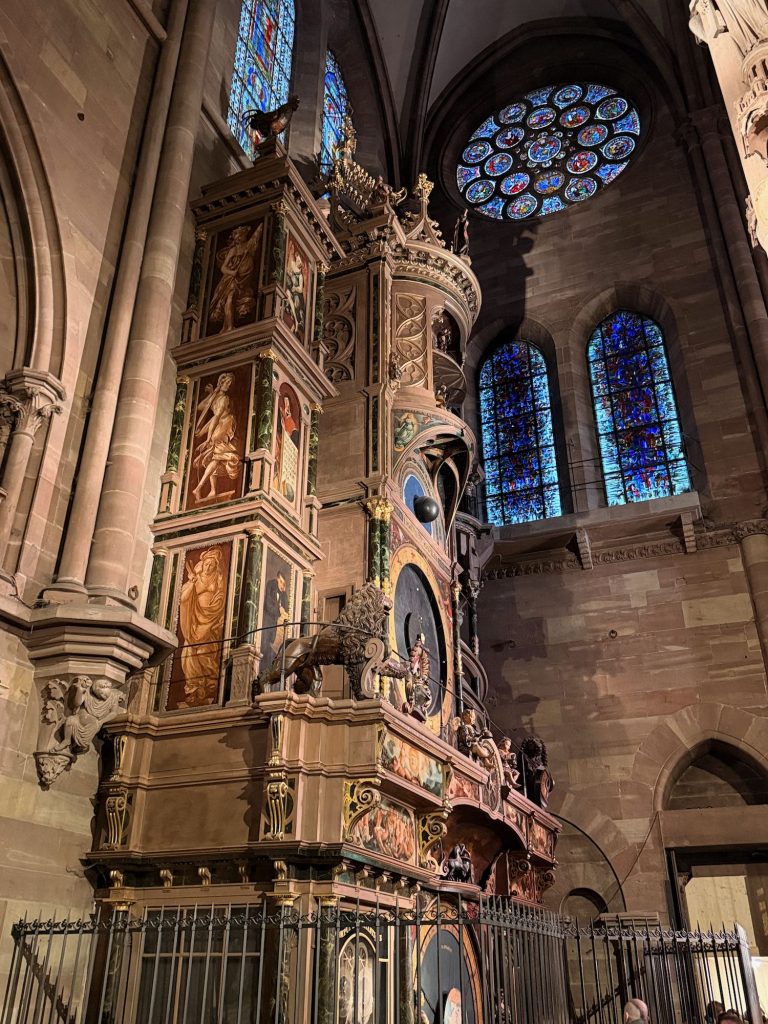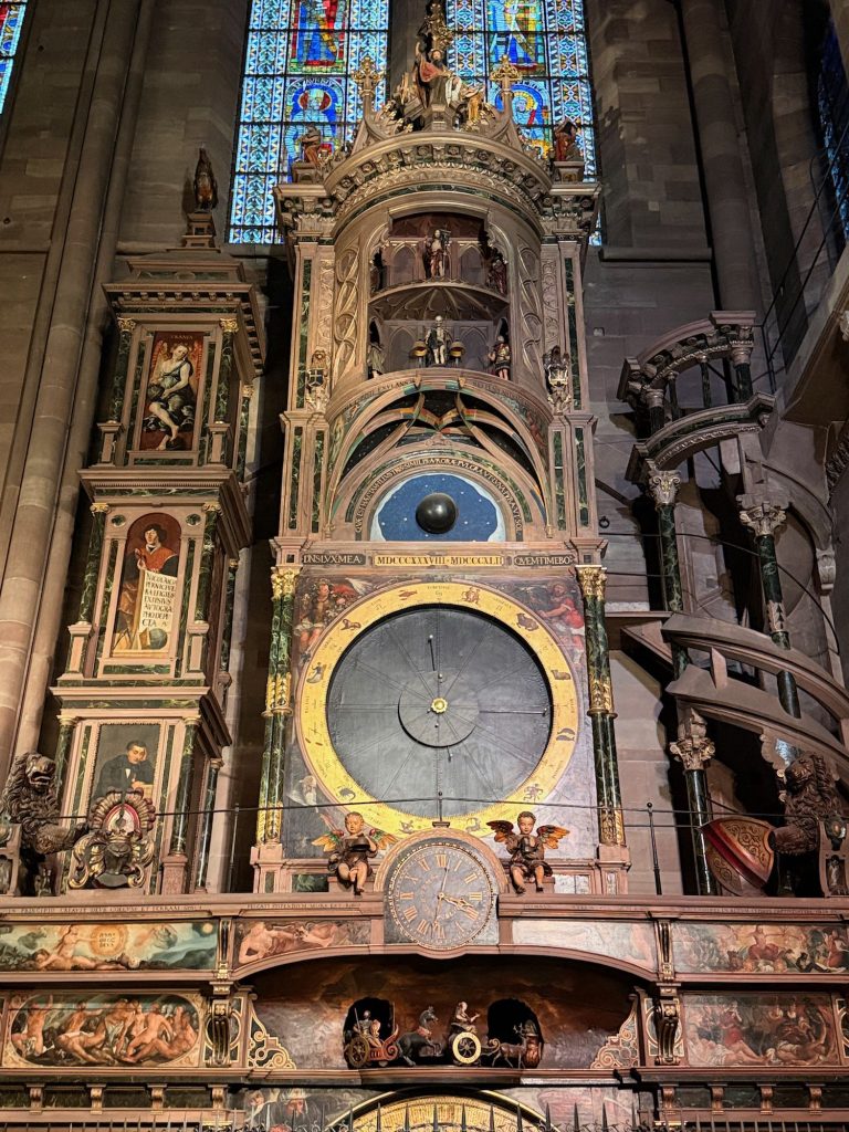 Na Praag en Lund nu ook de astronomische klok van Straatsburg bezocht, in de Notre-Damekathedraal in Straatsburg, Elzas, Frankrijk. We waren er in kersttijd, dus de enorme kerk was omgeven door gezellige en te lekkere kraampjes. Via op-en-neer-Efteling-wachtrijen waren we binnen 10 minuten binnen. Prachtige enorme kerk, maar ook een hele mooie klok.