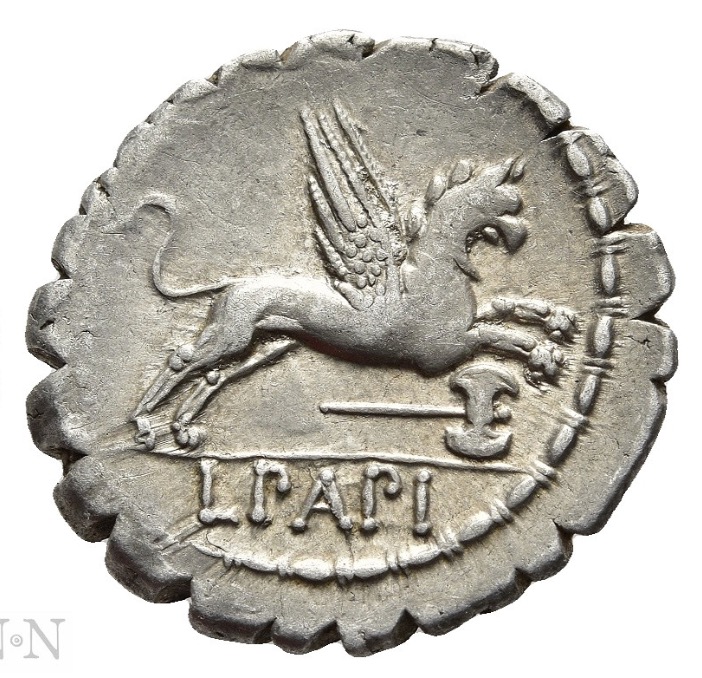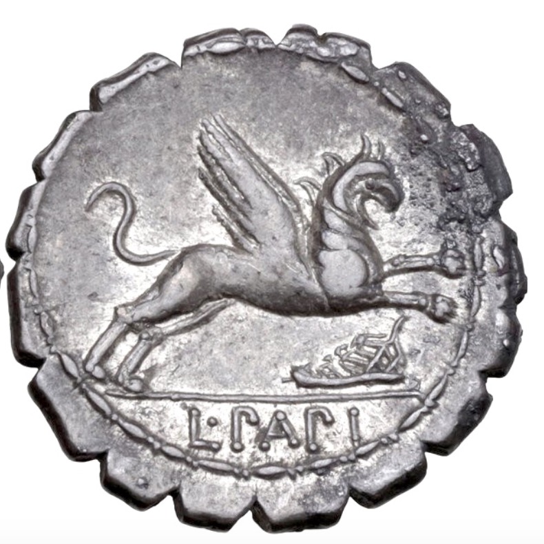 Ik keek eerder al op Catawiki naar Romeinse munten met een Griffioen erop, maar dat leek een dure hobby. Nu heb ik een veiling gewonnen tegen een betaalbare prijs, met een mooie afbeelding van een Griffioen erop. van 81 jaar NA Christus. Een prima start, kan goed nog meer volgen. Daarna ook een hele kleine van 450 jaar VOOR Christus aangeschaft. Ook deze was voordelig: ik heb (vooralsnog) net zo veel schik van een Griffioen op een muntje van een paar tientjes, dan een van honderden euro’s. Er is voldoende voorhanden: