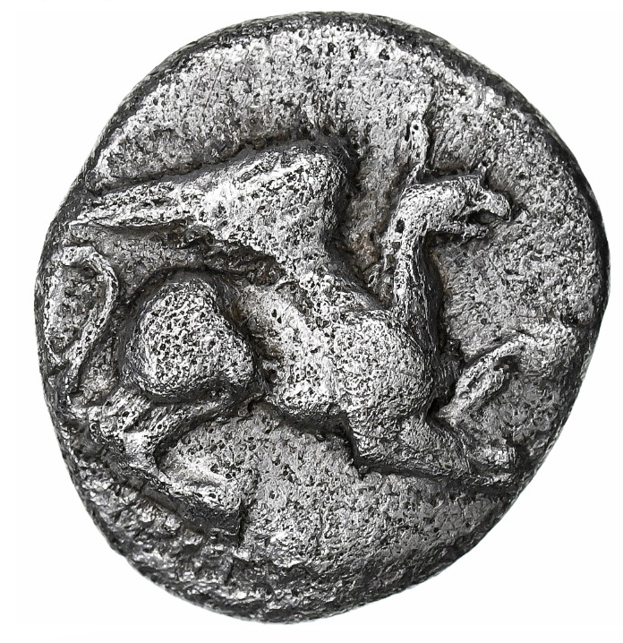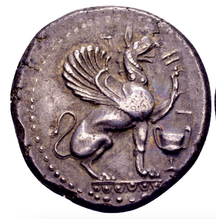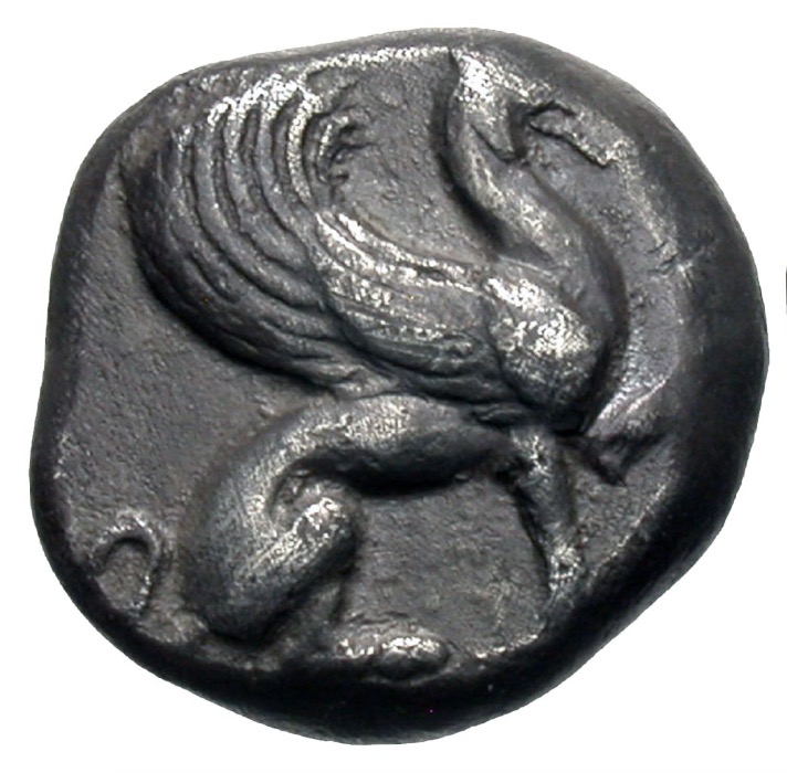 Voorzijde: De griffioen was het stadssymbool van Teos. De griffioen: was een beschermer van goddelijke macht, werd vaak geassocieerd met Apollo. Stond voor: waakzaamheid, orde, kosmische balans. Teos was: een rijke handelsstad, cultureel belangrijk, bekend om poëzie (o.a. Anakreon). De griffioen zei als het ware: “Deze munt komt uit Teos, onder bescherming van de goden.”