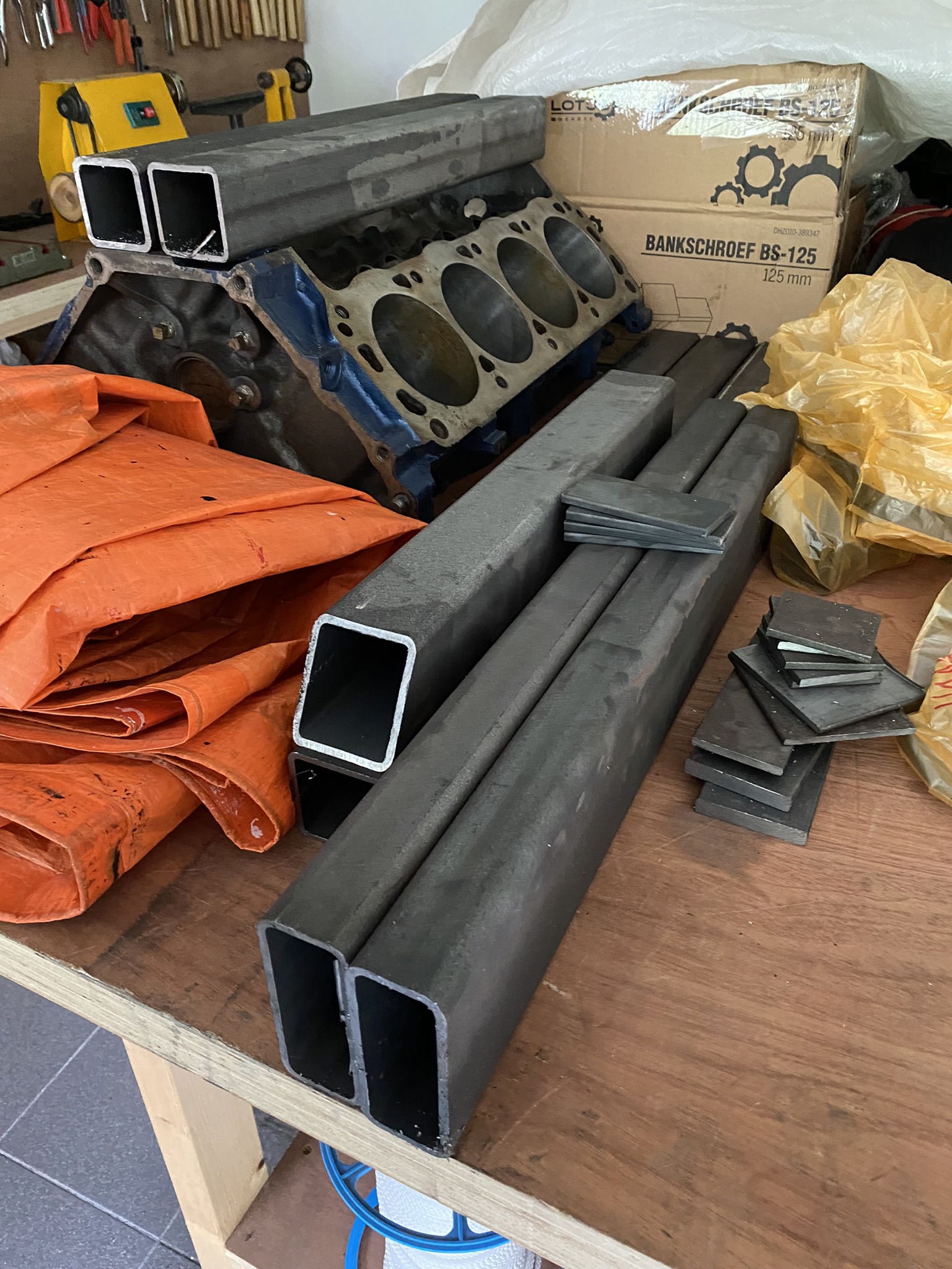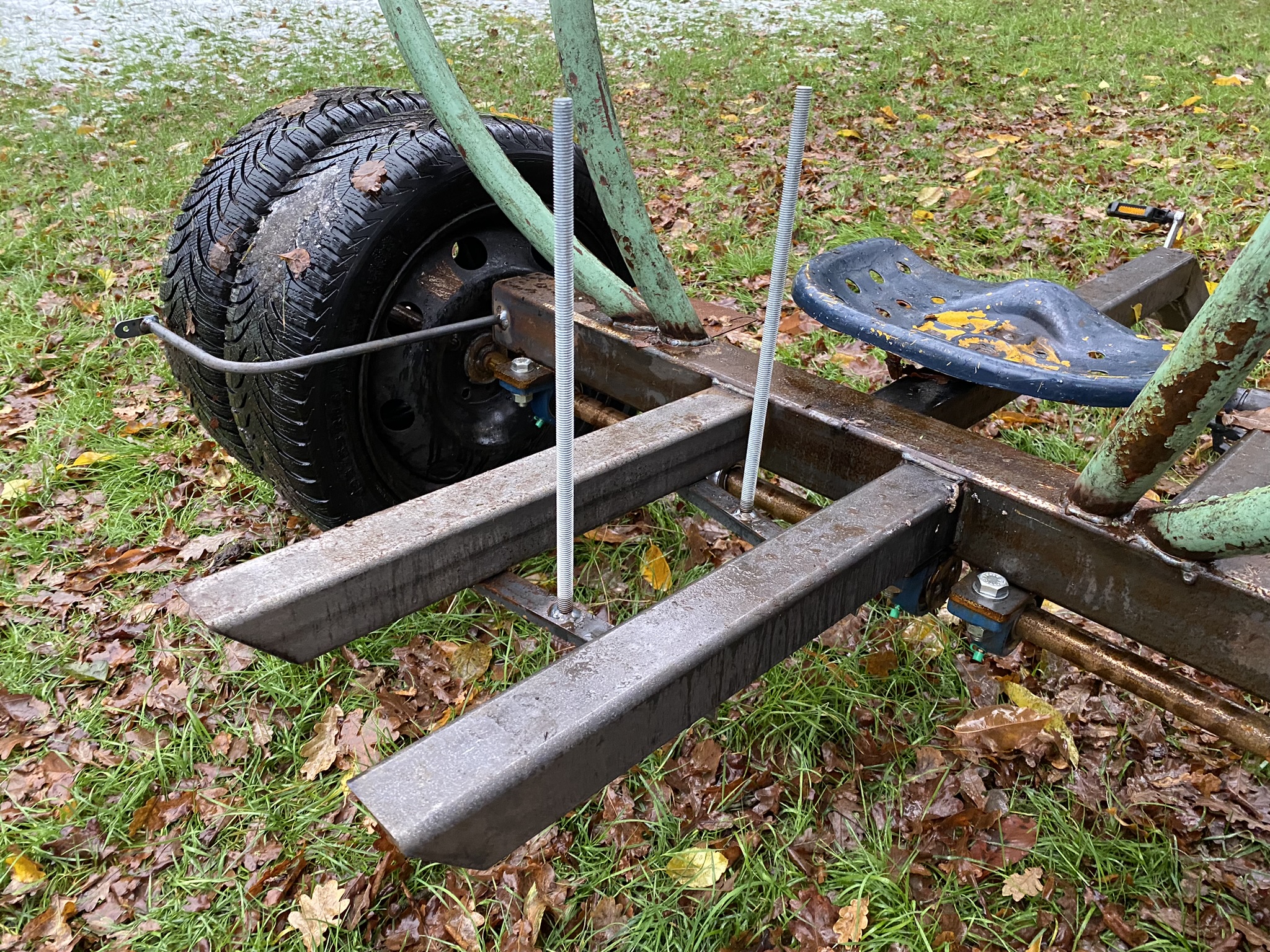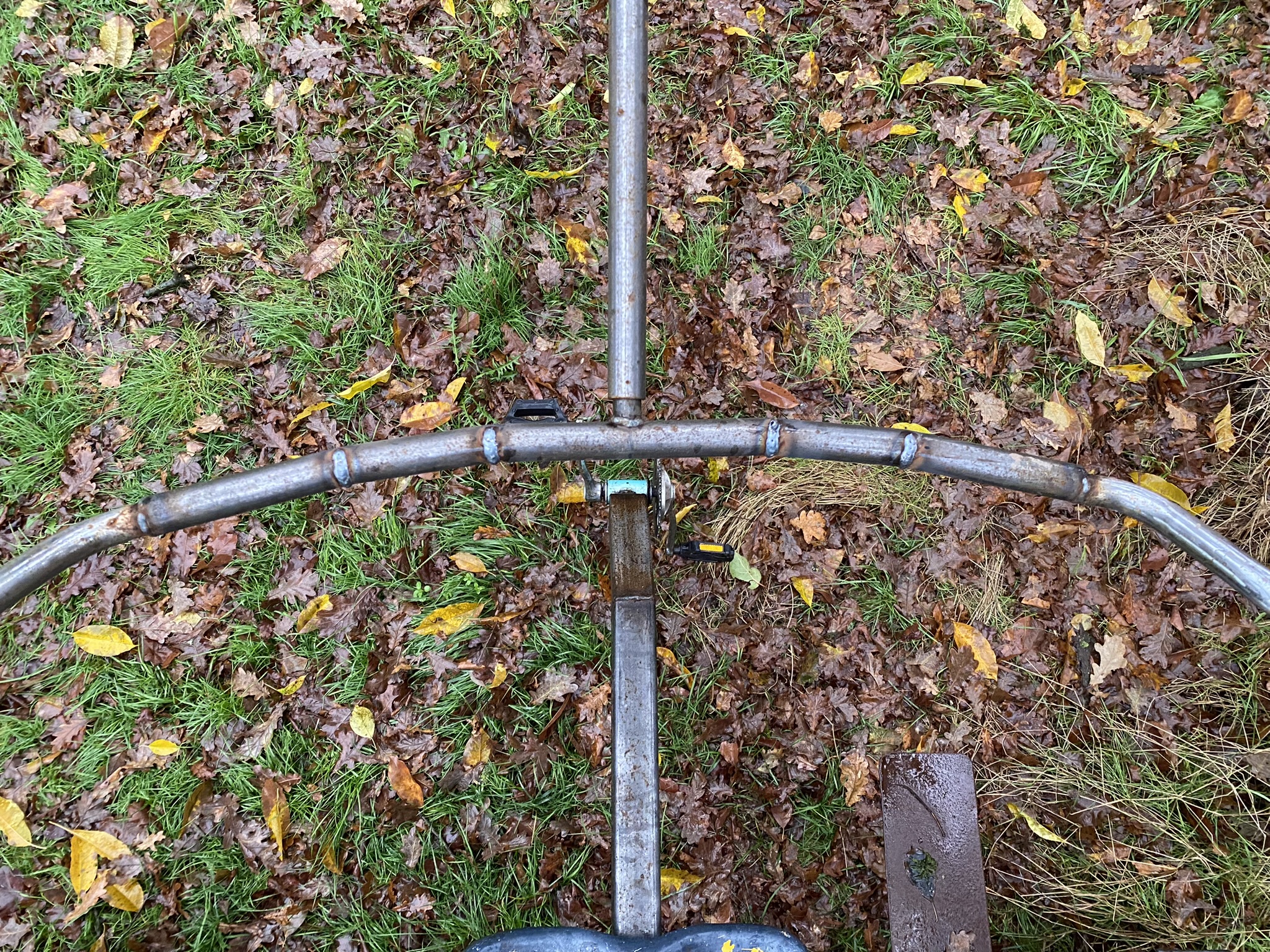 Rustig op mijn gemak bij Arno de achteras constructie bij elkaar verzameld uit afval, en ook de stuur en rem inrichting. Niemand in de buurt, mooi staan frotten, totaal nog geen 10 kilo oud ijzer, maar wel precies wat ik nodig had ! Moet nog wel een keer terug omdat ik iets te licht heb gedacht over de basisconstructie…