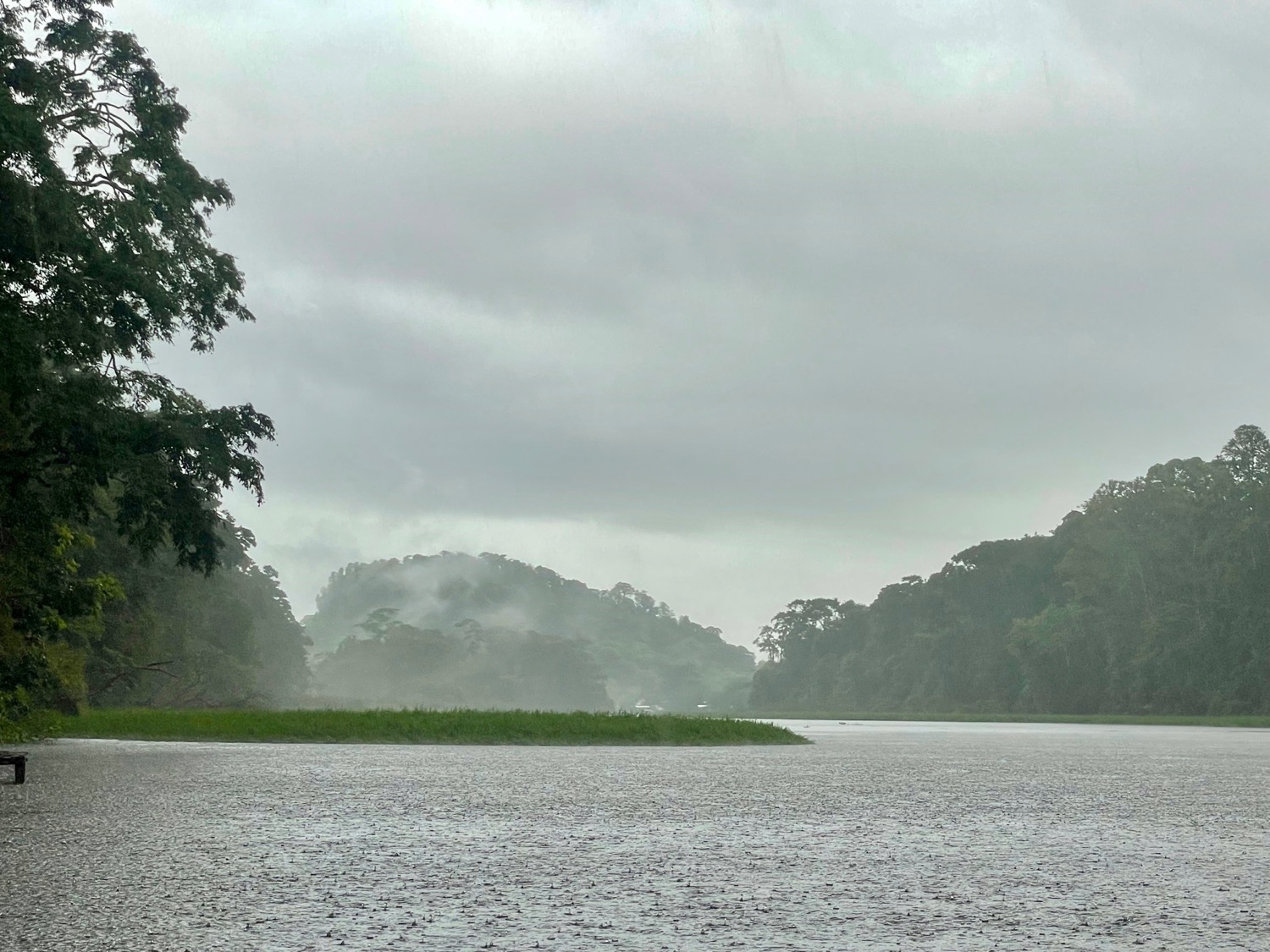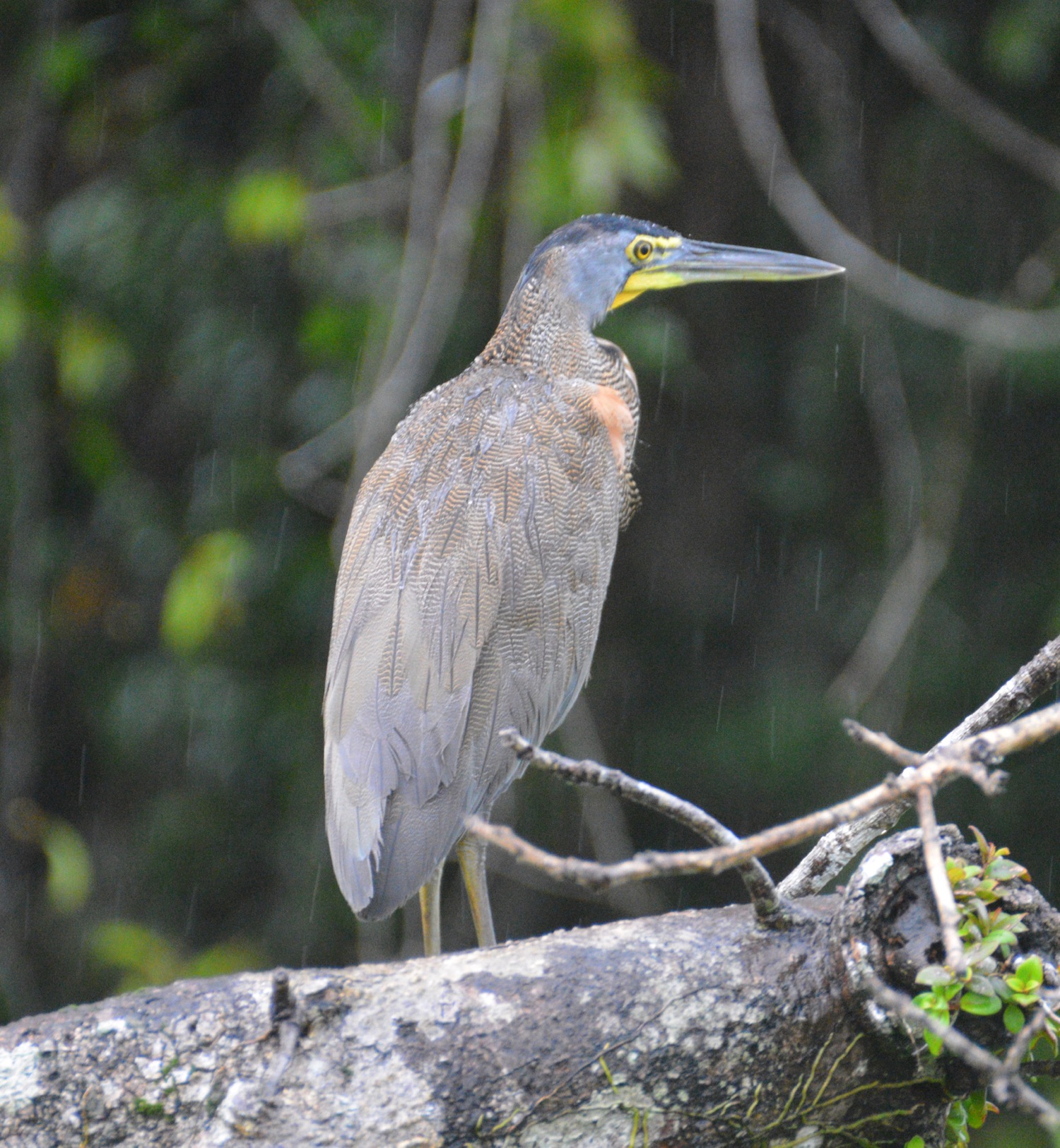 Weer vroeg op: 05:30 bij de boot om de natuur wakker te zien worden. We hadden gekozen voor wegwerp regenjasjes: foute keuze ! Wel gruwelijk gelachen want we waren nat tot op het bot. Niet koud dus eigenlijk geen probleem. Op zich al vanalles moois gezien op deze eerste echte dag in de jungle.