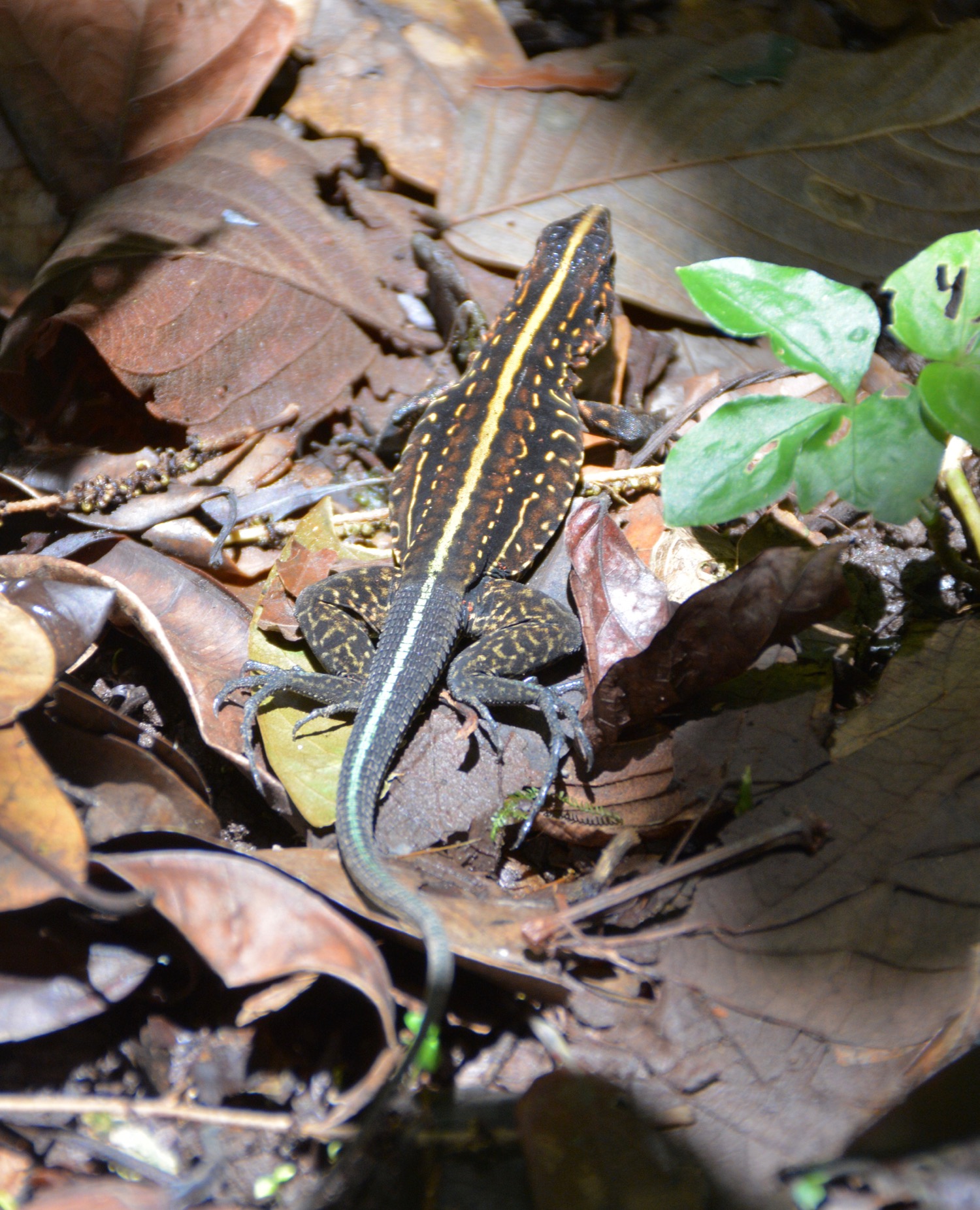 Meerdere leguanen gezien, waaronder die schattige kleine Jesus Christ Lizzard die over het water kan lopen. Mooi felgroen, maar zo snel dat ik hem hier nog niet vast kon leggen. De grotere jongens (nu met nog minder kleur) bleven goed stil liggen: