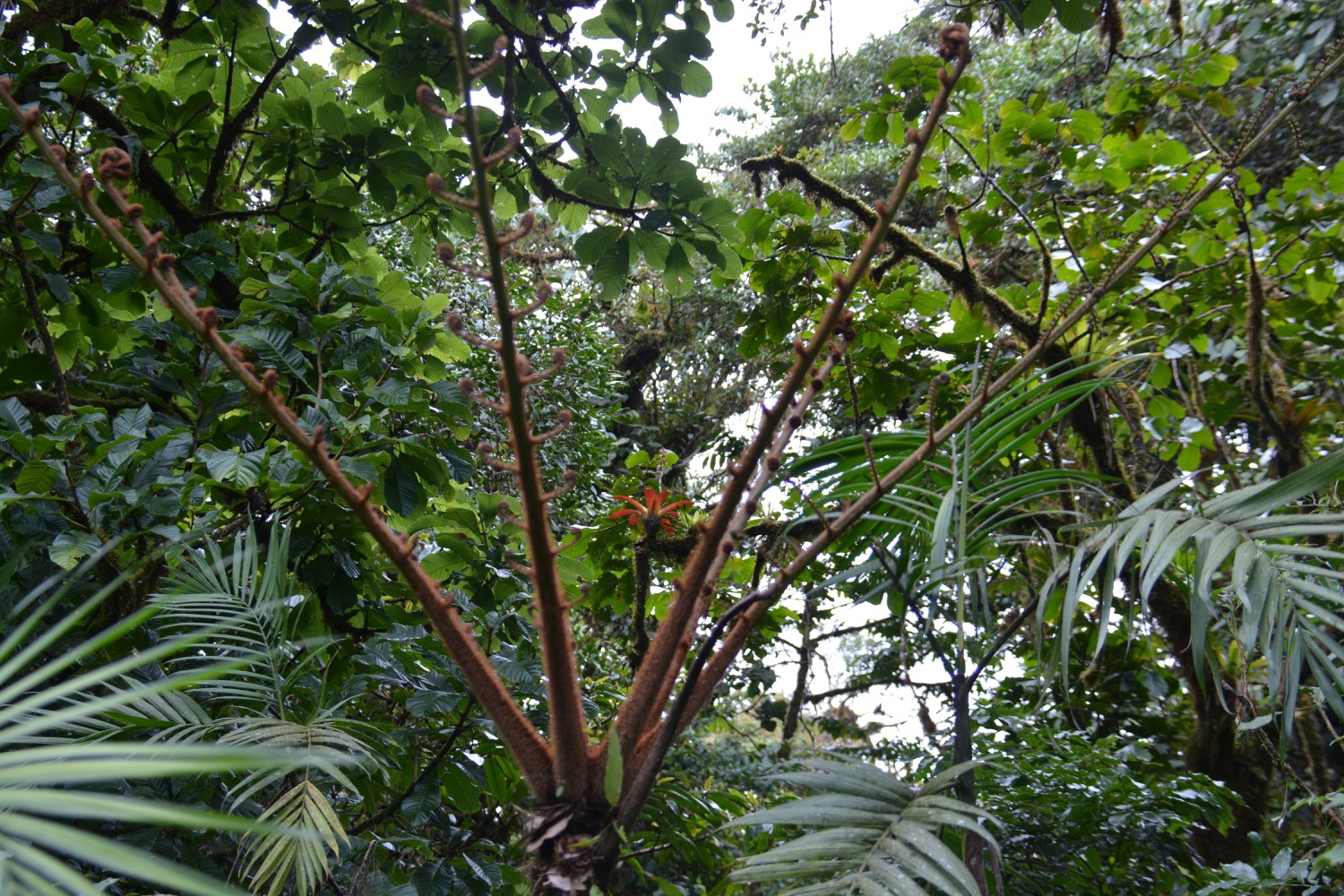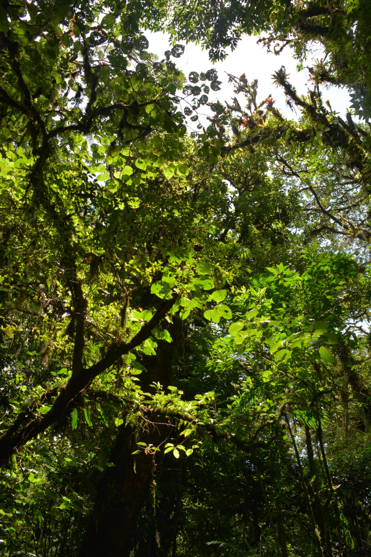 Volgens het reisvoorstel is de Canopy Tour het mooiste in La Fortuna of MonteVerde, we kozen voor de laatste. Veel Amerikaanse toeristen (Maar meer Nederlanders, echt ongelofelijk), en dus ook Amerikaanse prijzen, maar hier zijn we voor gekomen: We kozen voor Selvatura, keurig geregeld daar. Wat we niet wisten is dat je op die hoogte weinig beesten ziet. We zitten hier op 1600 meter hoogte en het is at frisser (22 graden) en vooral vochtiger (nevelwoud) en dus minder dieren. Het zicht van bovenaf en in de boomtoppen is echter geweldig. Foto’s van gebergtes en natuur komen nooit over, maar ik plaatse de foto’s toch even. Opklikken voor groot formaat ! (La Fortuna / El Arenal biedt ook mooie hangbrug tochten, daar dus wellicht meer kans op dieren: het afwegen waard)