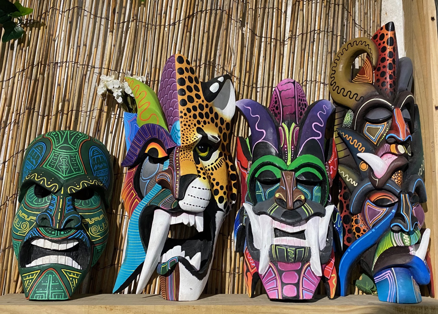 Zijn het wel maskers? Wel mooi, ideaal voor in de Moeslandse Optocht, zo kleurrijk.