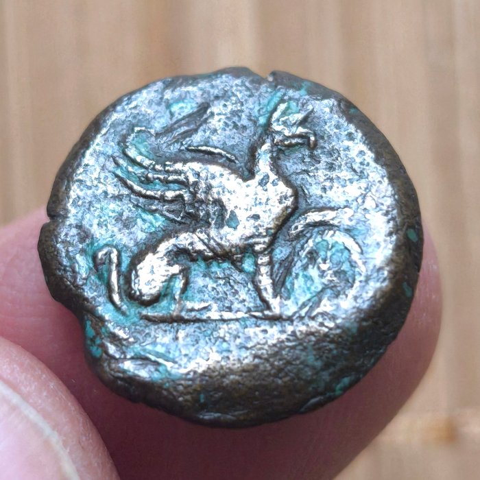 Ik keek eerder al op Catawiki naar Romeinse munten met een Griffioen erop, maar dat leek een dure hobby. Nu heb ik een veilig gewonnen tegen een betaalbare prijs, met een mooie afbeelding van een Griffioen erop. Een prima start, kan goed nog meer volgen.